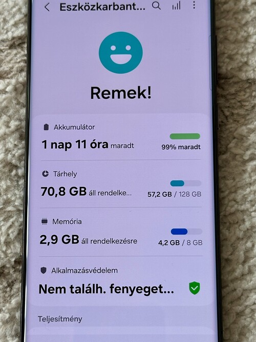 Eladó egy Samsung Galaxy S22 Ultra készülék. A telefont kicsit több mint 2 éve vásároltam újonnan (garanciában újracserélt verzió volt), fekete színű, 128Gb tárhellyel és 8Gb memóriával rendelkezik, kártyafüggetlen. Használt, de nagyon szép, szinte kifogástalan állapotban van, csak az egyik sarkán kopott meg a festék alig láthatóan (nem tudom hogyan, állandóan tokban volt tartva ...). Minden része rendben működik, az akku közepes használat mellett is másfél napot bír még. Doboza és töltőkábele is megvan, valamint jár hozzá 2db jó állapotú tok is.