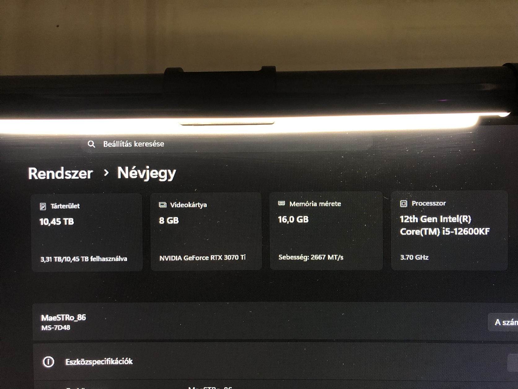 Eladó Gamer gép RTX 3070ti, I5 12600KF, 16GB DDR4