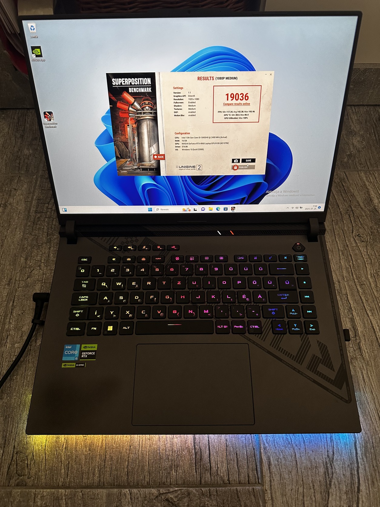 📺 Kijelző: 16″ WUXGA (1920×1200), 165 Hz, 16:10, IPS panel 🇭🇺 Magyar világítós billentyűzet