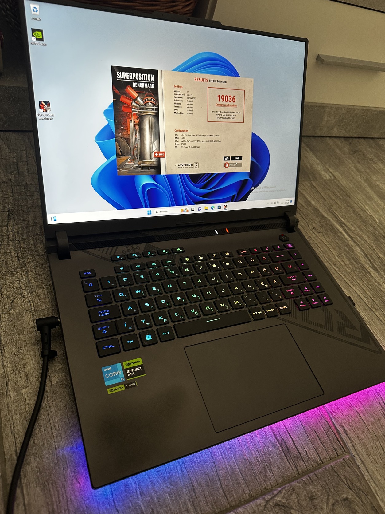🎮 Videókártya: Nvidia GeForce RTX 4060 8 GB (max. TGP ~140 W)