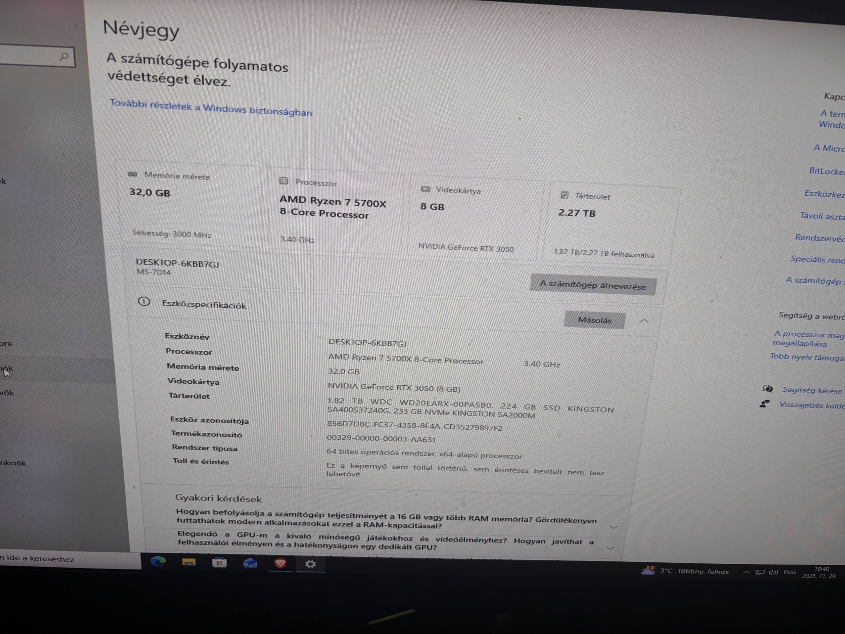 Eladó hibátlan állapotú, 1 éves gamer PC, nem volt húzva, nem volt bányászatra használva. FullHD high/ultra játékokra kiváló teljesítmény. Specifikáció: • AMD Ryzen 7 5700X • NVIDIA RTX 3050 (8 GB) • 32 GB Kingston Fury RAM (2×16 GB) • MSI A520M PRO alaplap • 500 GB SSD + 1 TB HDD • 600 W tápegység • Windows telepítve, azonnal használható Átvétel: személyesen, készpénz Eladás oka: erősebbre váltás Alku: minimálisan