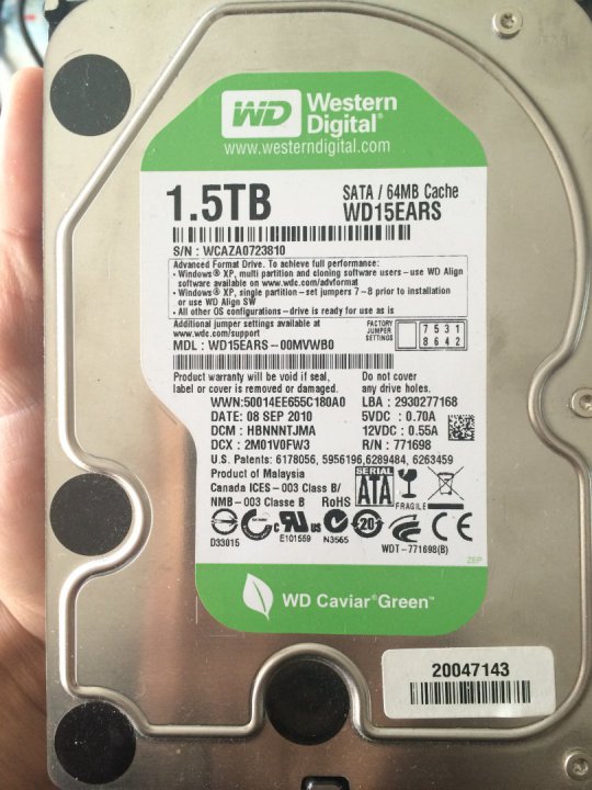 HDD: Western Digital WD15EARS-00MVWB0, 64Mb Cache, 1,5TB