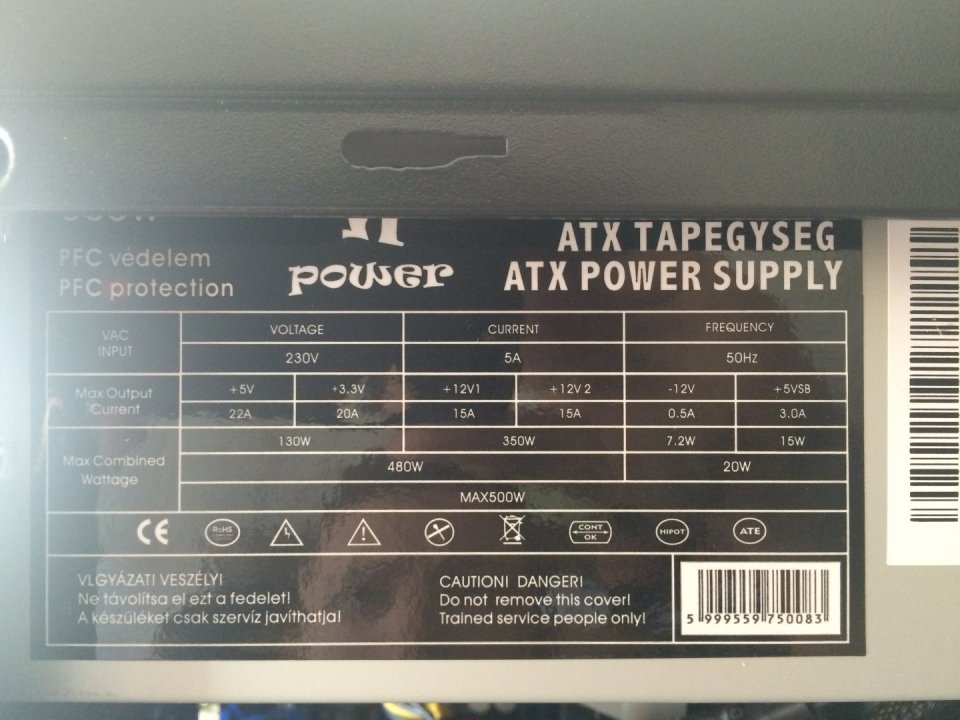 Tápegység: 500W