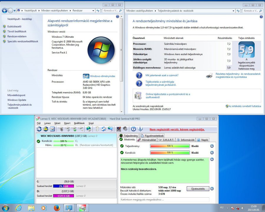 Processzor: AMD A8-5600K, 4*3800 MHz