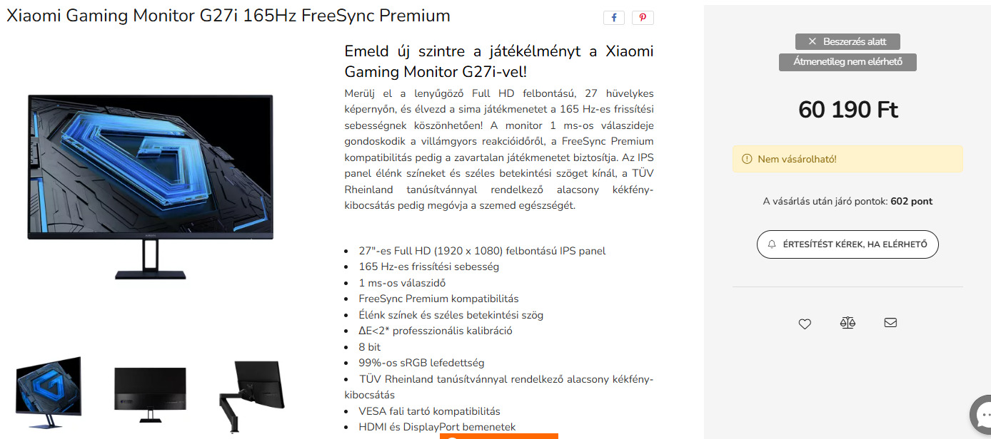 Monitor: Xiaomi G27i – 1920×1080, 165 Hz