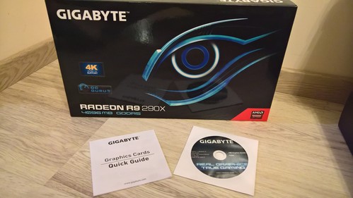 Eladó 1 db Gigabyte AMD Radeon R9 290X videokártya a képeken látható dobozzal + user guide + telepítőlemez. Garancia lejárt.
