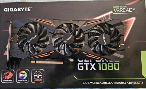 Eladó a címben említett Gigabyte GTX 1080 Gaming videókártya dobozával együtt.