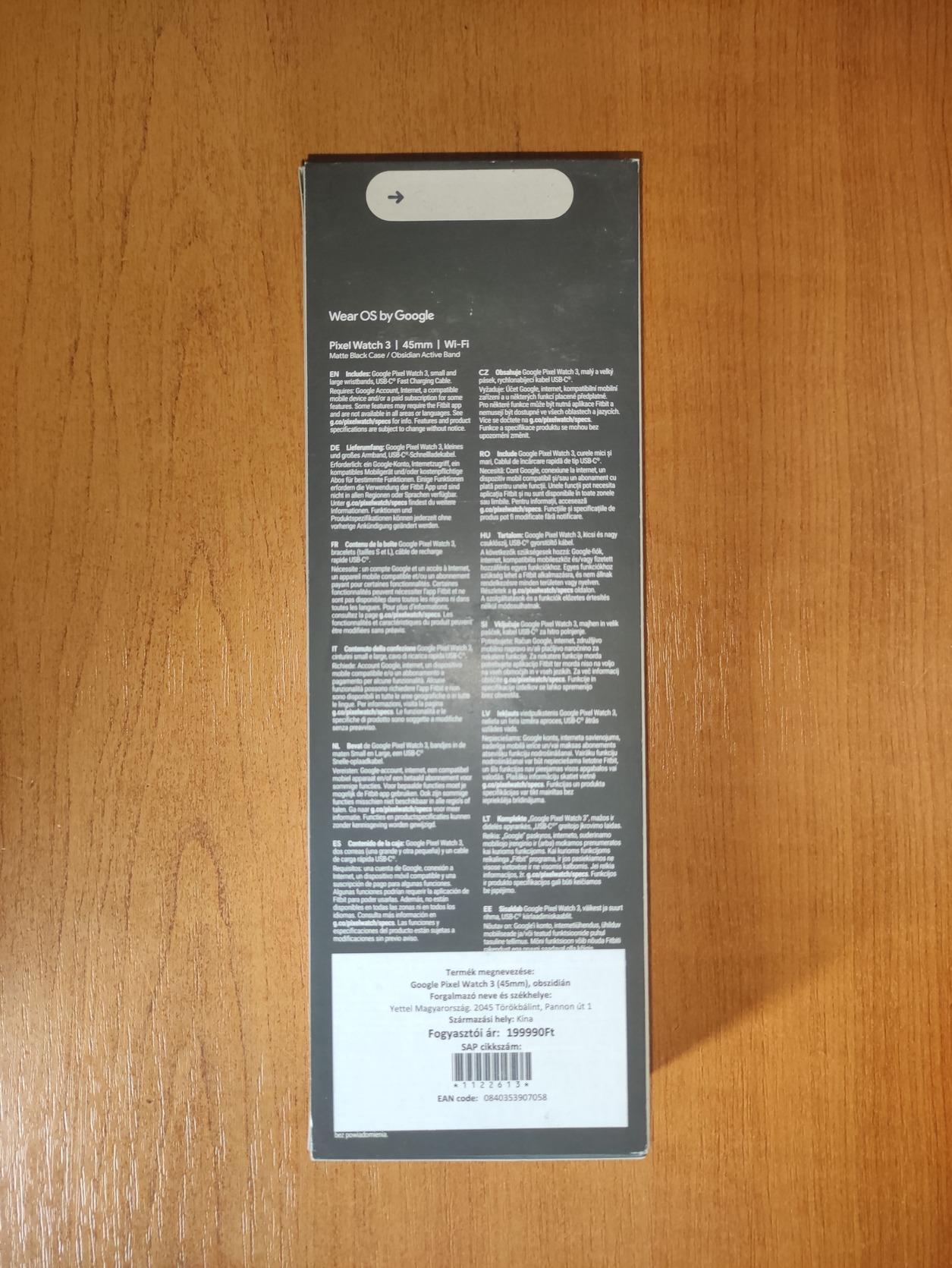 Eladó a címben említett bontatlan, garanciális Google Pixel Watch 3 (45mm), obszidián óra.