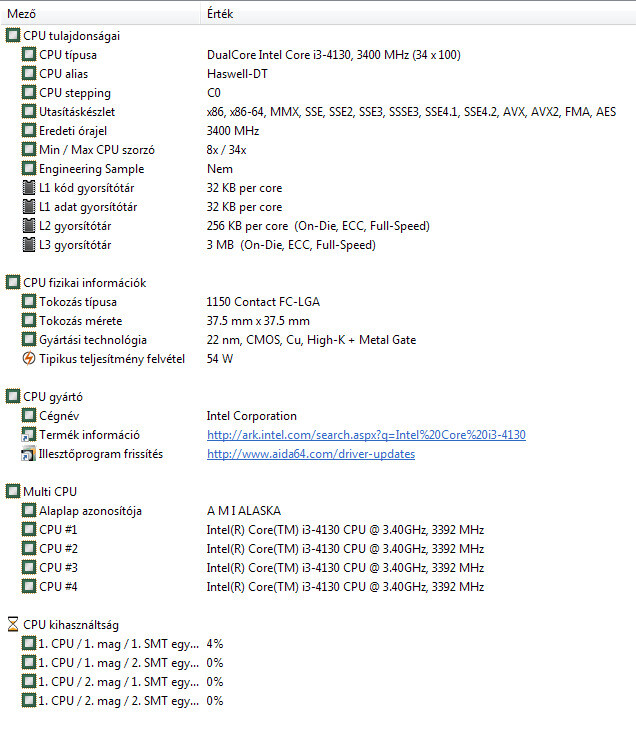 CPU: Intel Core i3-4130 + stock hűtő
