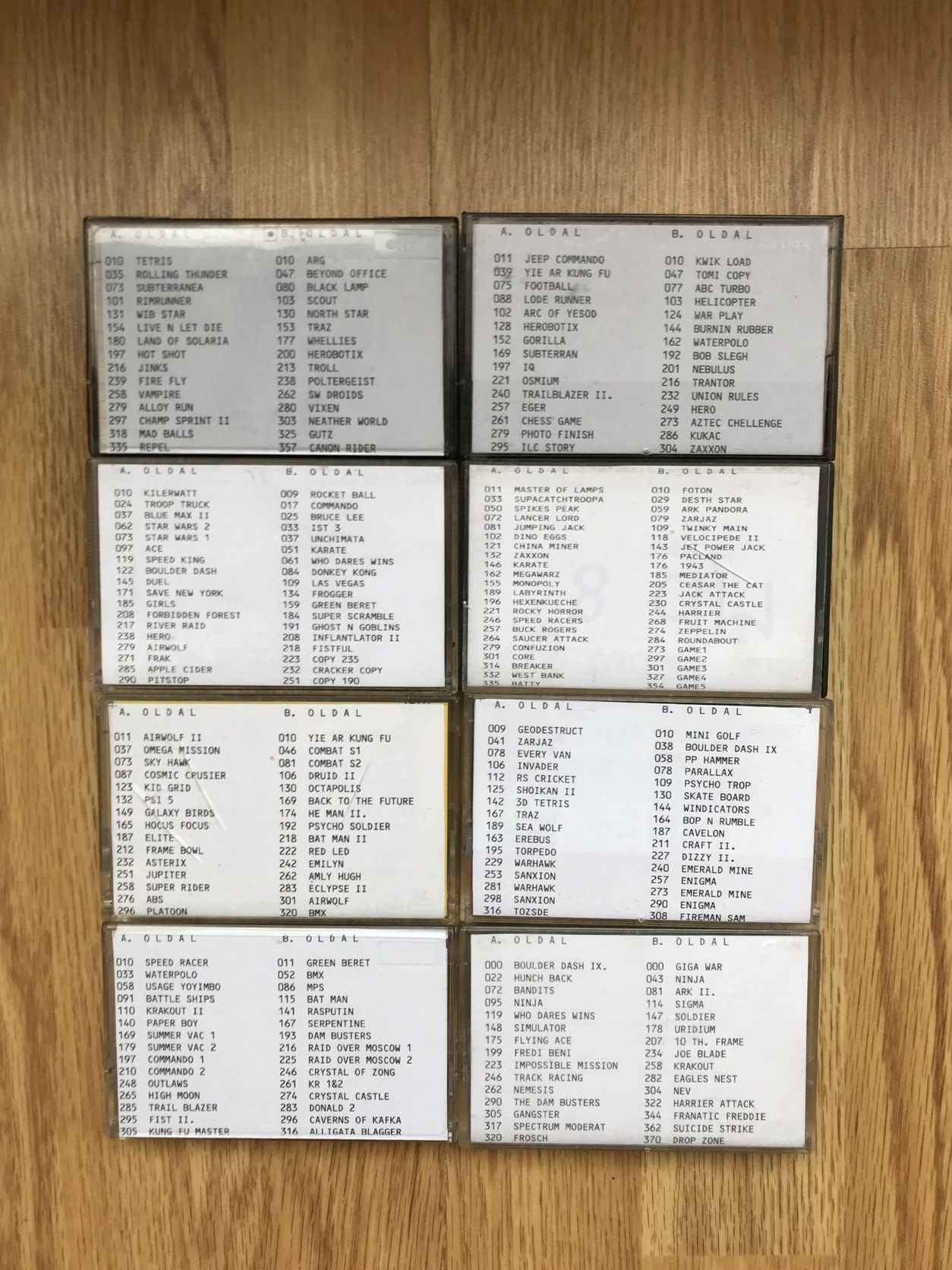 A pack 8 db játék kazettát tartalmaz átlagosan 30-40 db játékkal kazettánként.