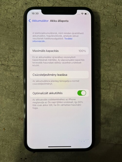 Eladó használt 256 Gb-os iPhone X, most cserélt 100%-os akkumulátorral, hibátlanul és kártyfaüggetlenül, minden tartozékkal: