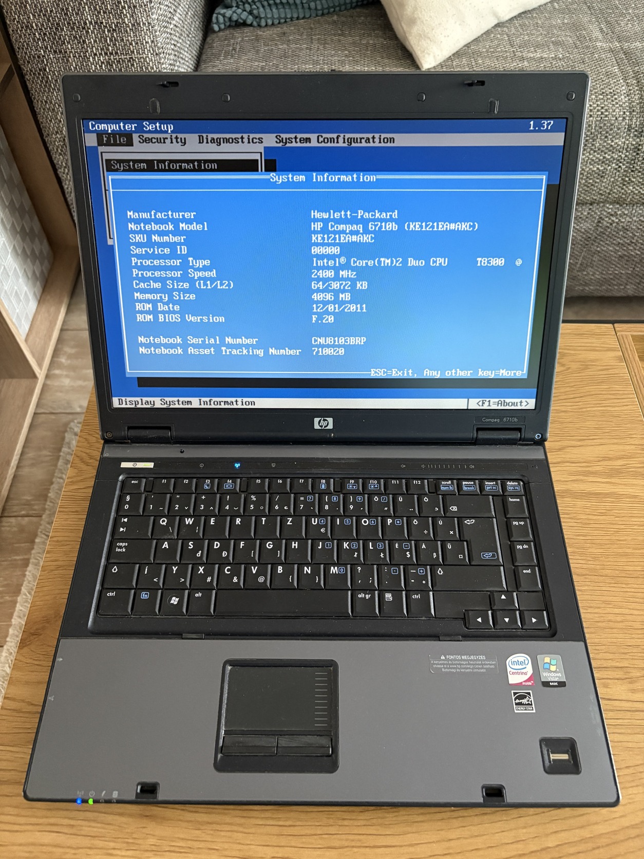 Eladó a címben szereplő HP 6710b laptop.