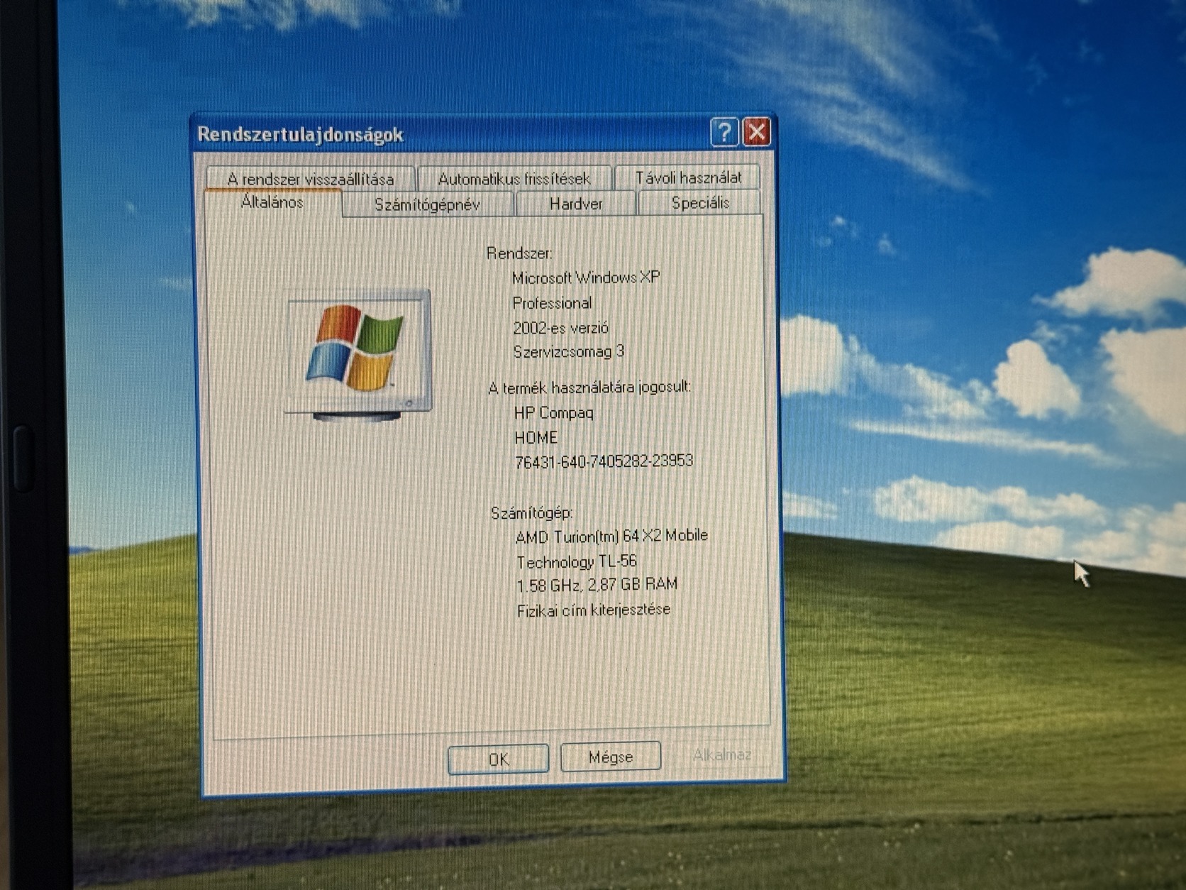 - Előtelepített Windows XP Professional SP3 32 bites operációs rendszer