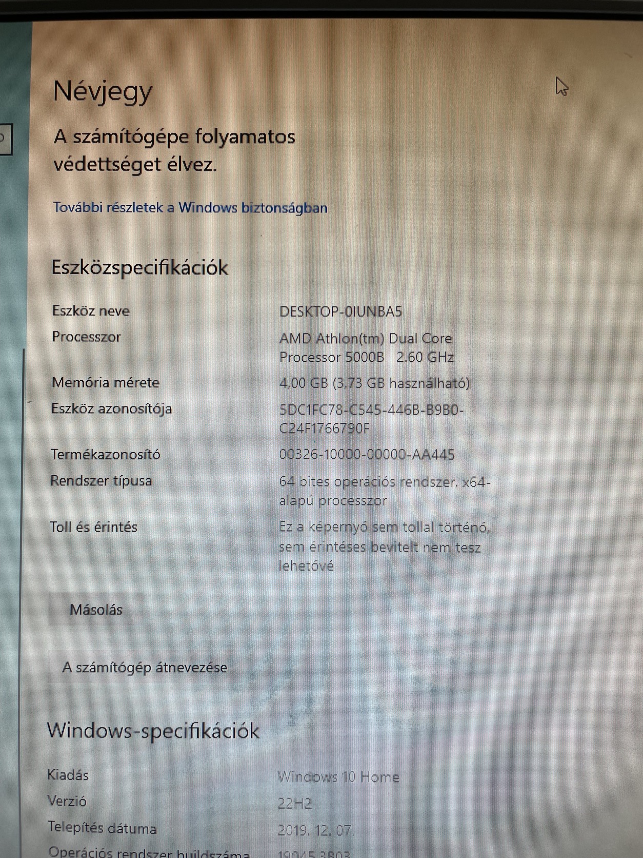 Processzor: AMD Athlon Dual Core 5000B – 2.6 GHz Memória: 4 GB DDR2 RAM Háttértár: ❌ NINCS (HDD/SSD nélkül)