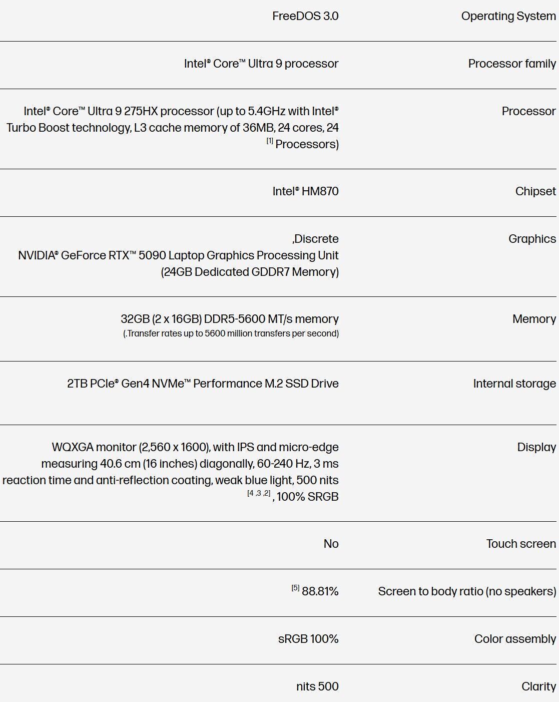 - CPU: Intel® Core™ Ultra 9 Prozessor 275HX (8 P-cores & 16 E-cores, 36MB Cache)