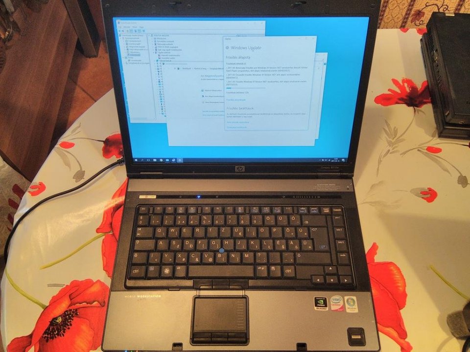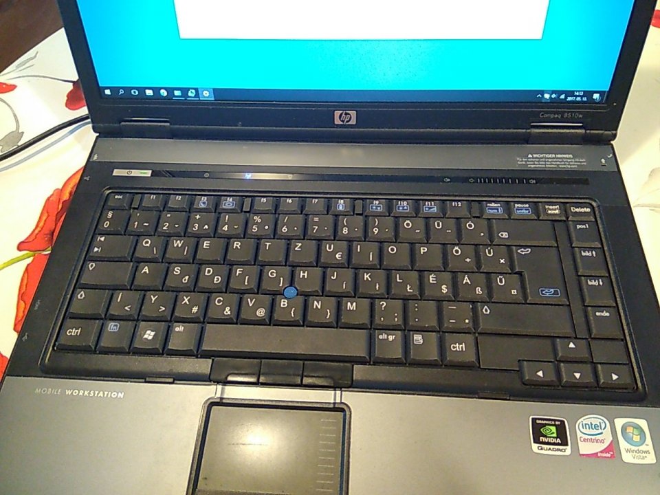 Szép állapotú (fedelén pár szvsz apró karc), masszív munkagép magyar billentyűzettel (nem eredeti, itteni, West matricával magyarították, szinte észrevehetetlen hogy nem gyári). Jelenleg Windows10 fut rajta hibátlanul, de ehhez licenc/matrica nincs.