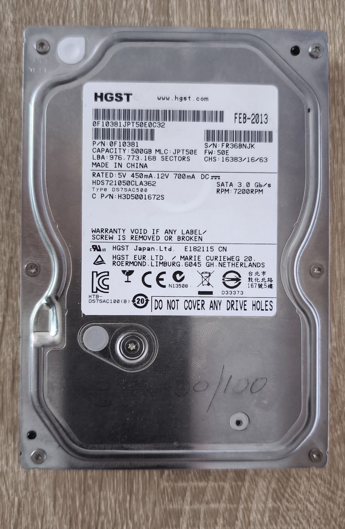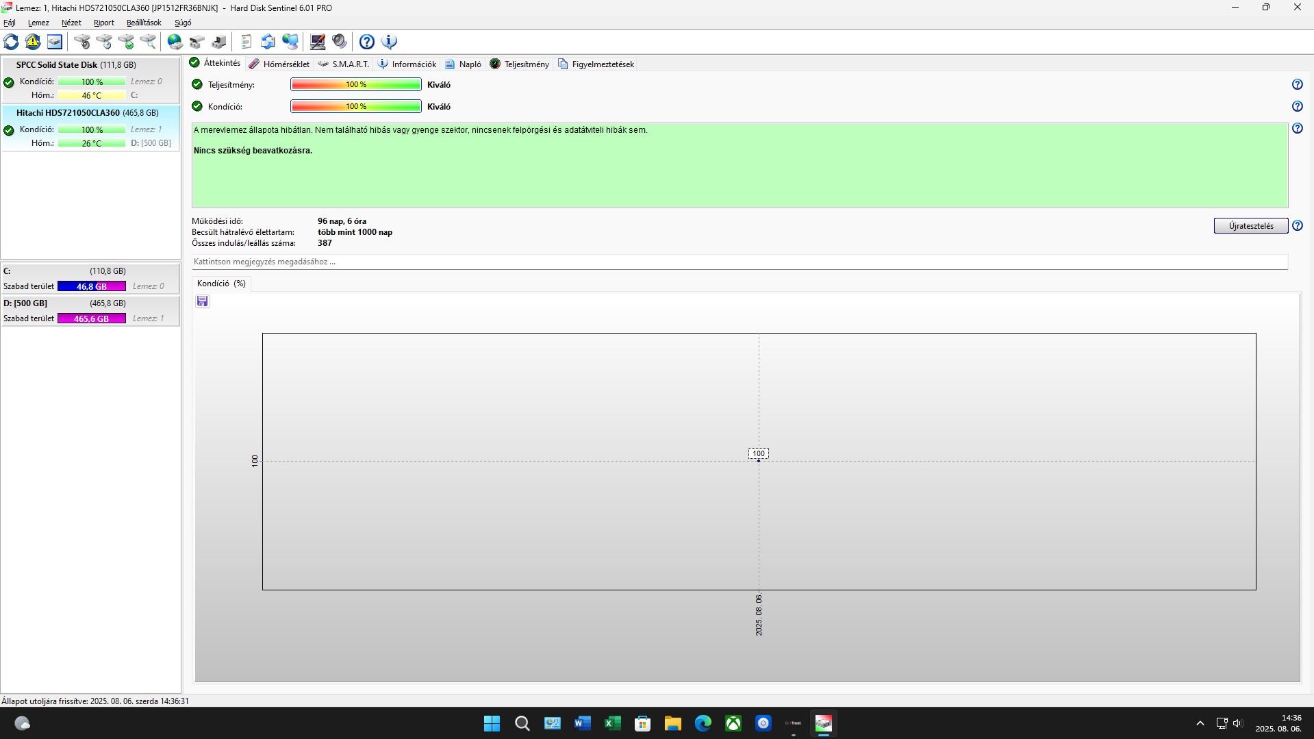 Hitachi 500 GB HDD 100/100% 96 napos futásidővel.