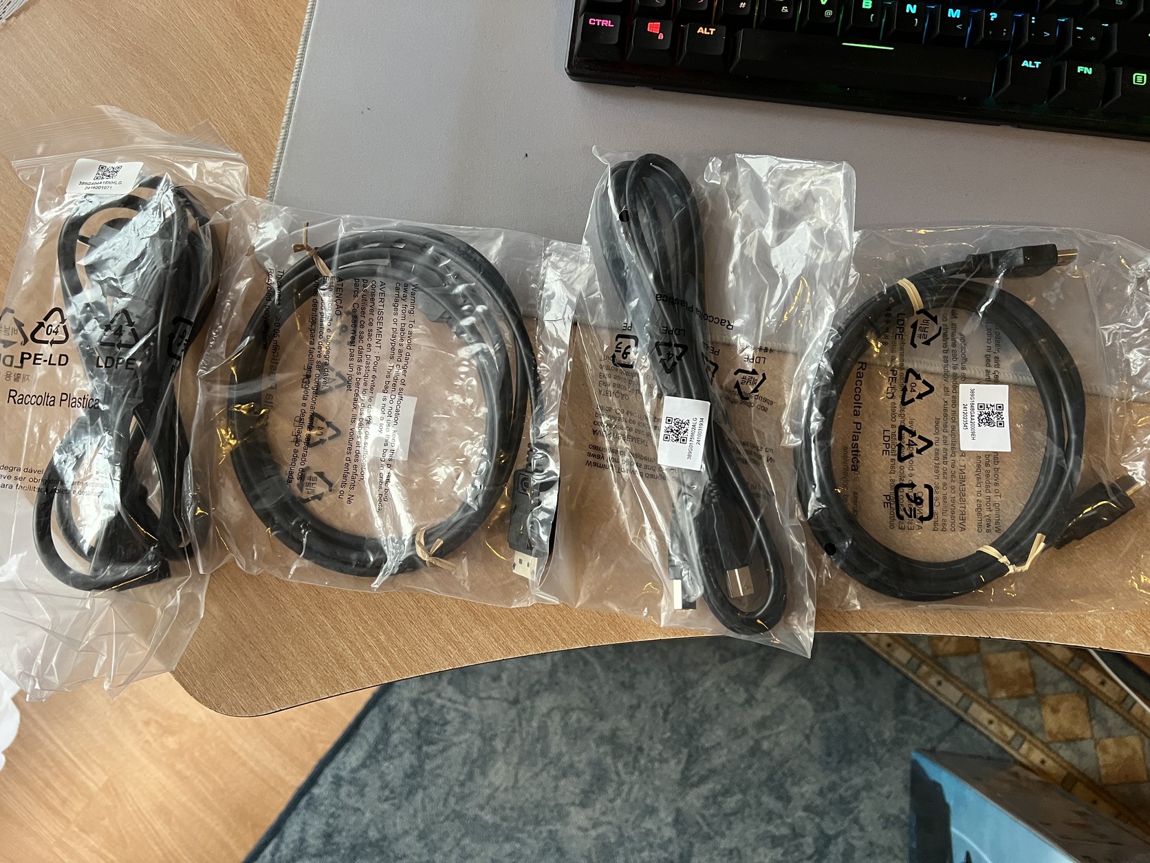 - Gyári kábelek (DP, HDMI, táp, USB)