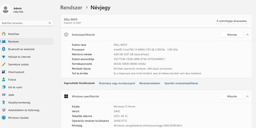 Jelenleg Windows 11 24H2 Home aktiválva.