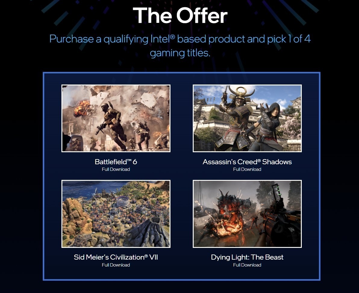 Eladó Intel Holiday Bundle kupon BF6, stb.
