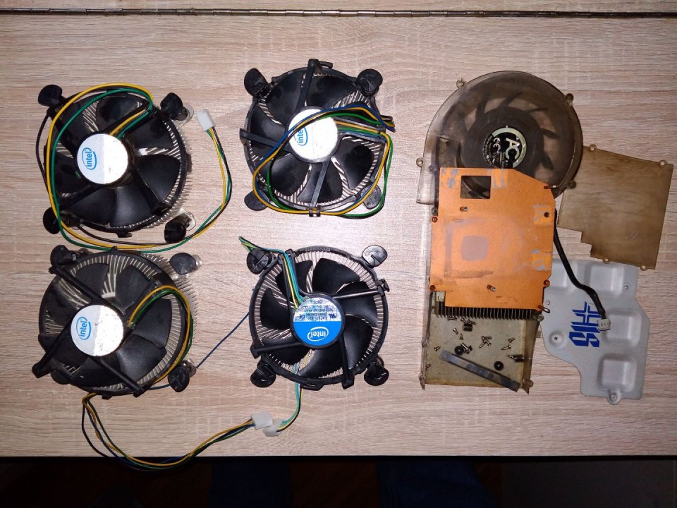 Három problémás gyári Socket 775 hűtő (letört műanyagláb, szakadt vezeték), és egy alig használt, hibátlan Socket 1150-es.