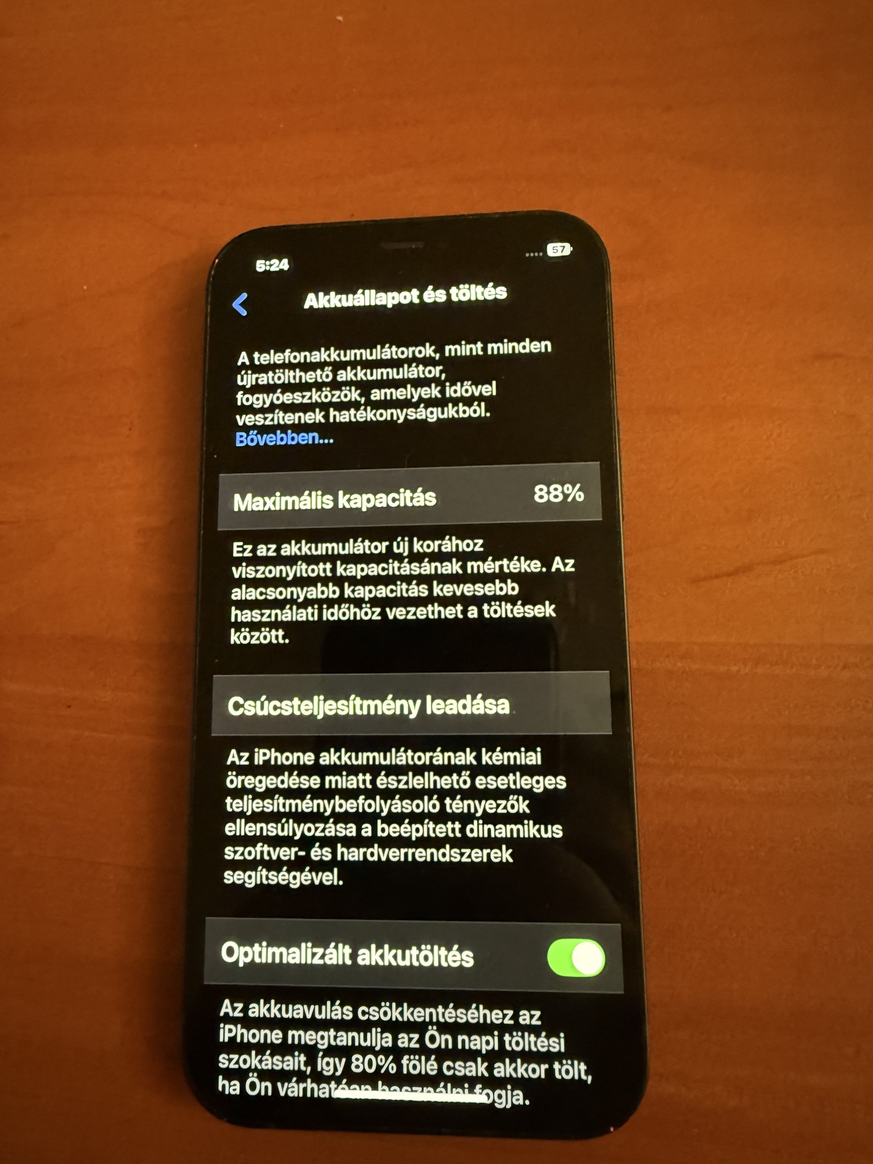 Akkumulátor állapota: 88%