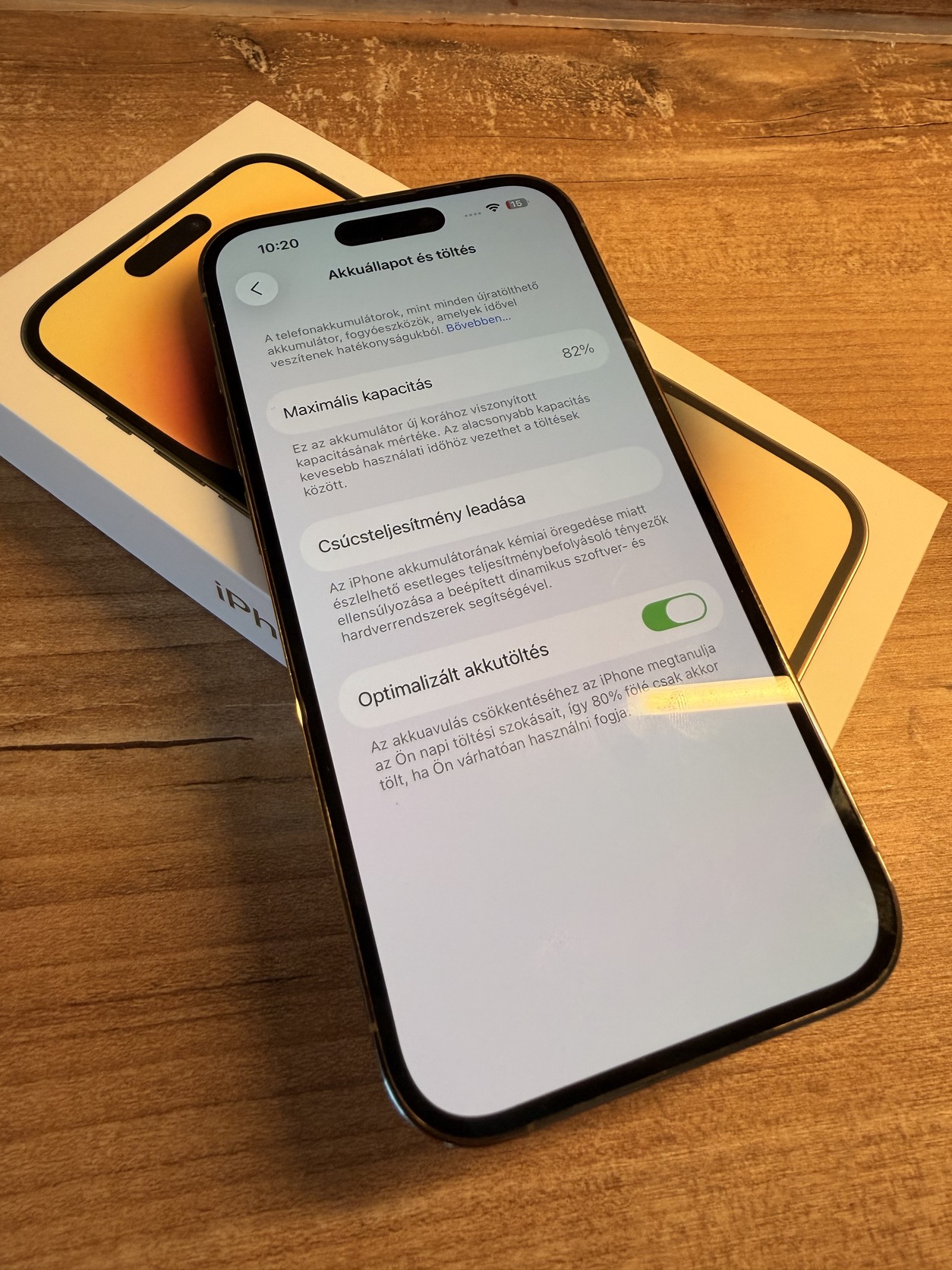• Akkumulátor állapota: 82%