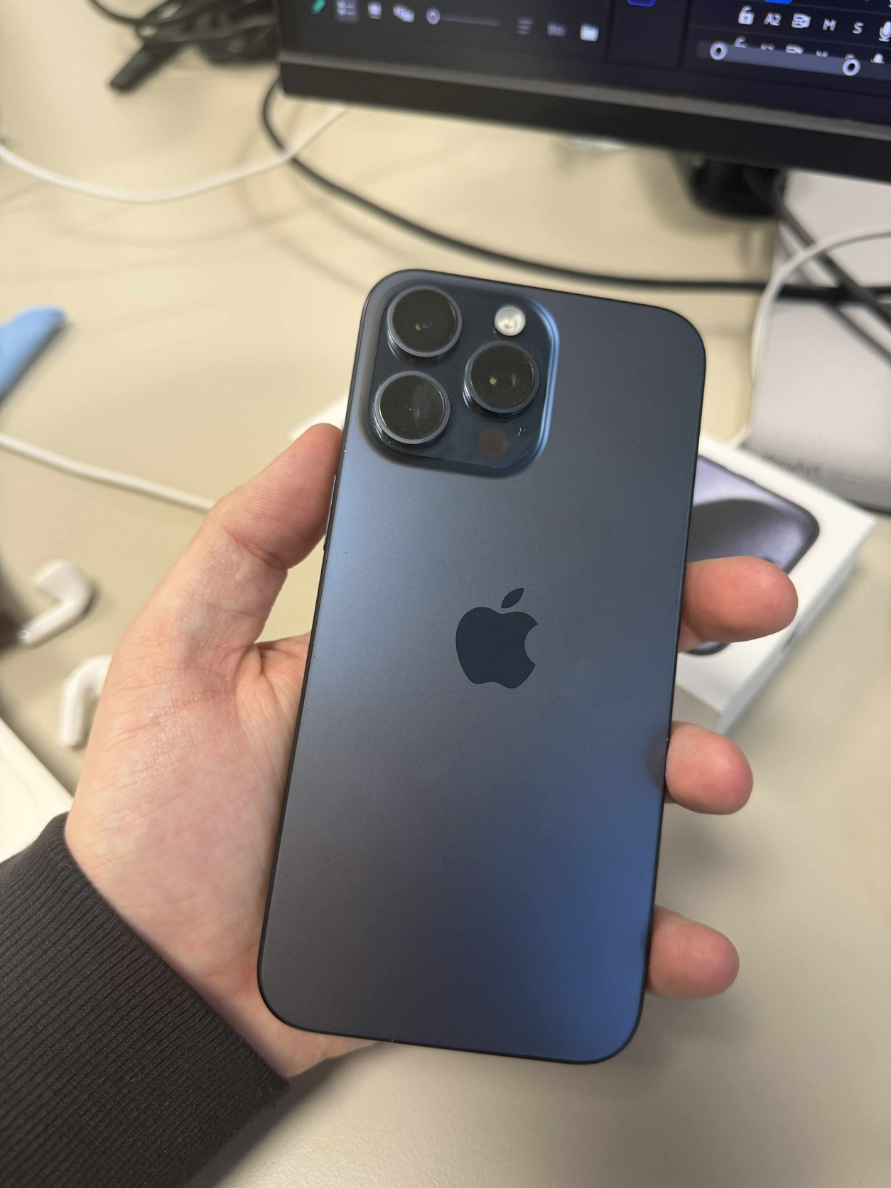 Eladó egy barátom iPhone 15 Pro Max 256 GB-os, kék (Blue Titanium) színű készüléke, hibátlan, megkímélt állapotban.