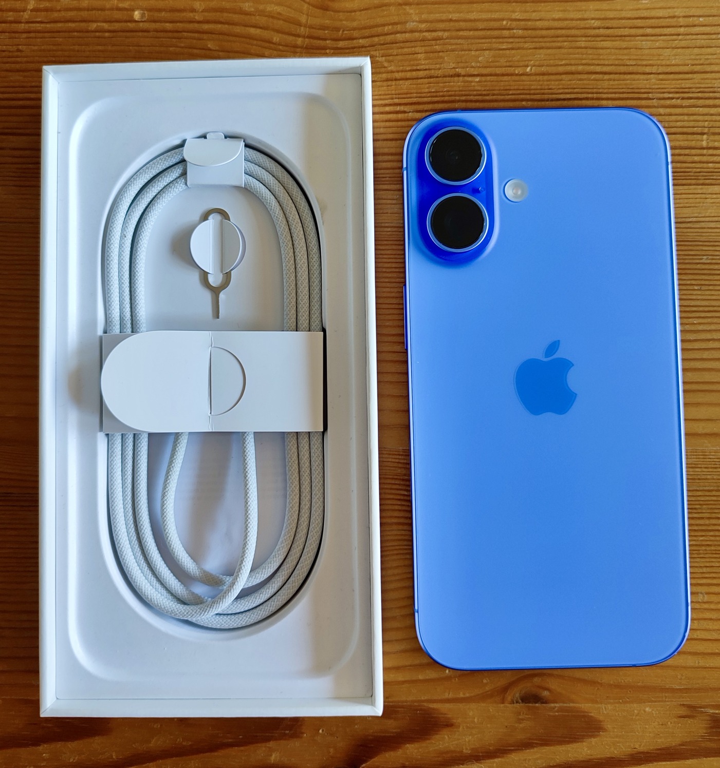 Eladó újszerű Ultramarin kék színű Iphone 16 256 Gb belső tárhellyel és eredeti töltőkábellel és dobozzal, ára: 279.990 Forint