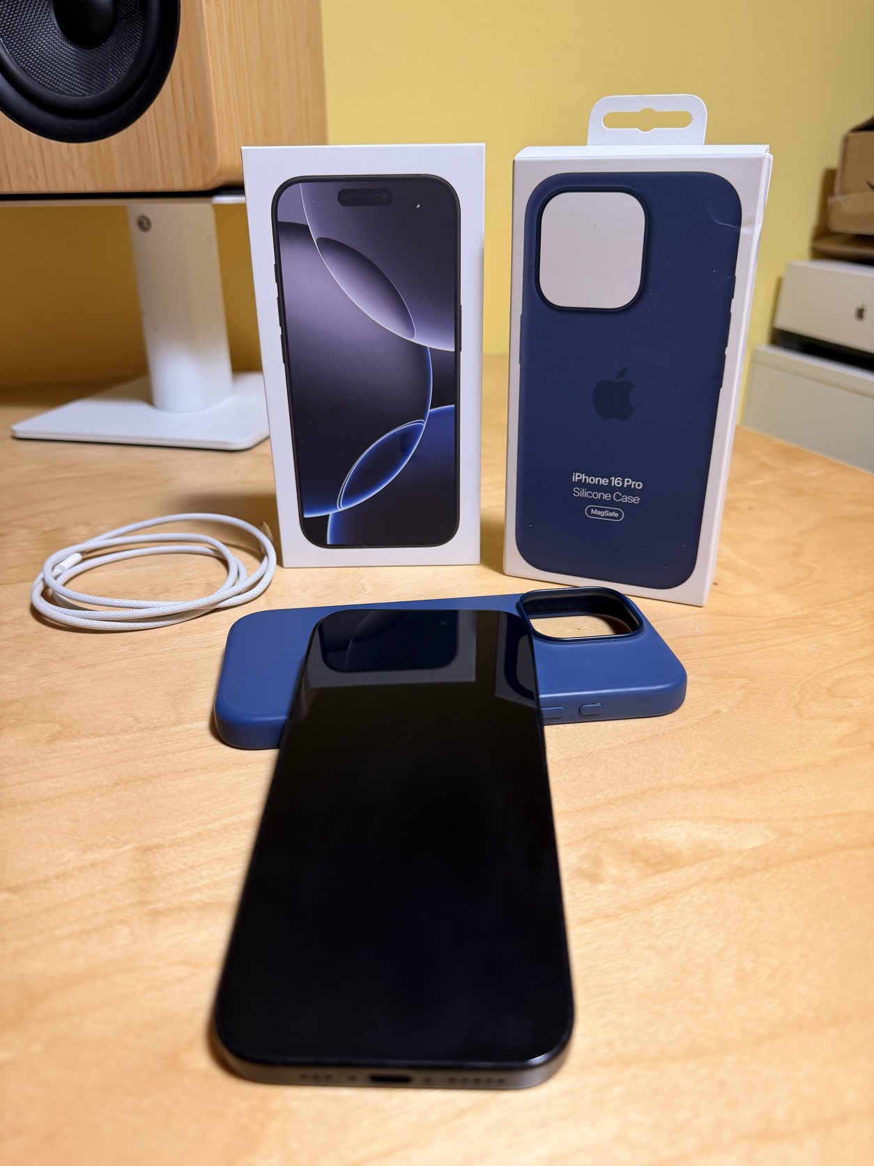 Eladó megkímélt, makulátlan állapotú iPhone 16 Pro Black Titanium színben, 256 GB tárhellyel és minden tartozékaival.