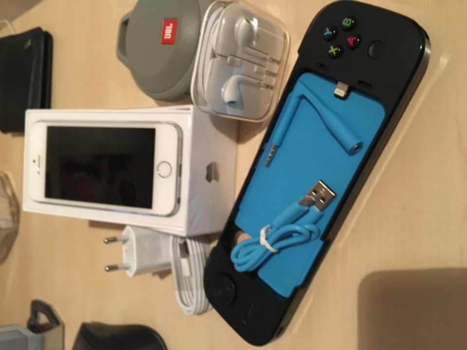 Doboz, bontatlan EarPods(3,5 mm-es fejhallgató-csatlakozóval) , bontatlan 5 wattos Apple USB hálózati adapter + Lightning – USB átalakító kábel (1 m), LOGITECH (940-000156) POWERSHELL CONTROLLER +1500mAh BATTERY, JBL Clip+ Portable bluetooth speaker