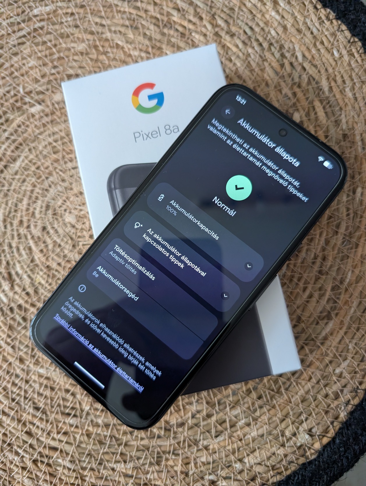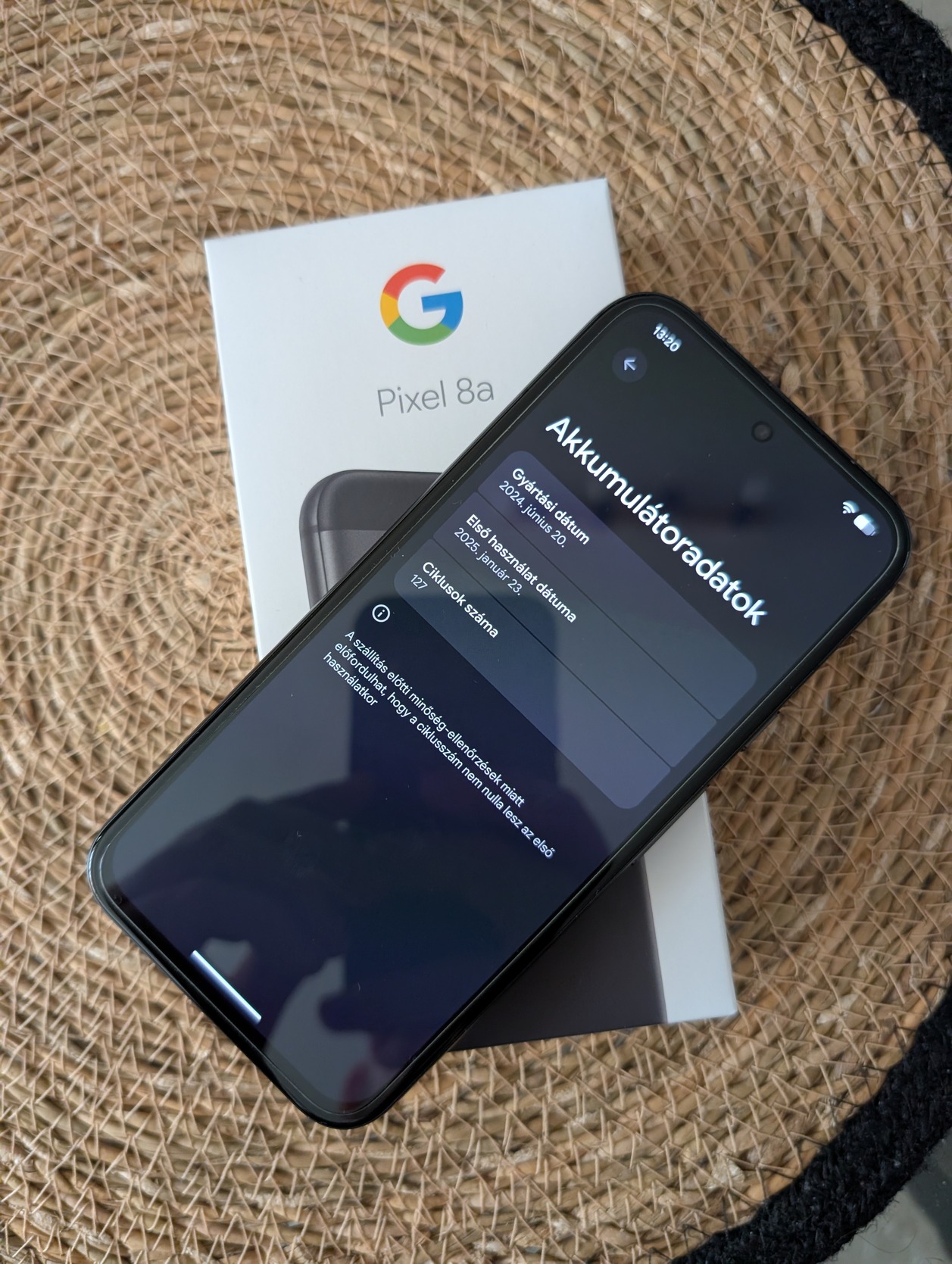Eladó kártyafüggetlen Google Pixel 8a 128 GB telefon, fekete (Obsidian) színben. A telefont 2025.01.21-én vettem az Alzában, így még bő egy évig garanciális a készülék. A telefon tökéletesen működik, és külsőleg is hibátlan állapotú, mivel mindig tokban, üvegfóliával volt használva. A telefon akkumulátora 100%-os, jelenleg 127 ciklus van benne, ami már nem fog változni, mivel nincs használatban a készülék. A telefonhoz jár a doboza, USB-C kábele, papírjai, számlája, illetve egy gyári, Google szilikon tok fekete színben, és egy Nilkin tok is.