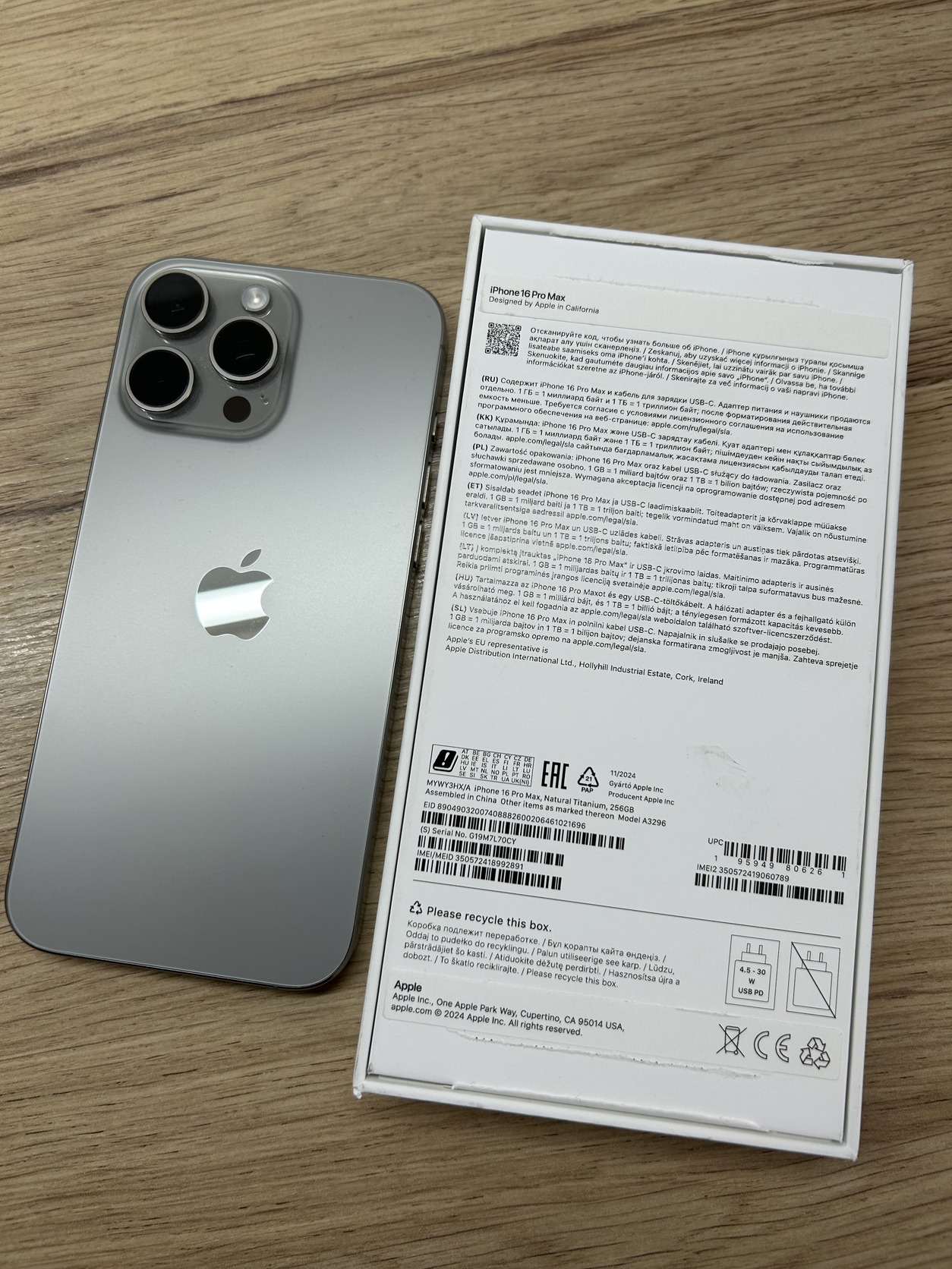 Eladó kártyafüggetlen iPhone 16 PRO MAX 256GB Natural TITAN dobozában, töltőkábel, karcmentes állapotban, 94%-os akkuval.
