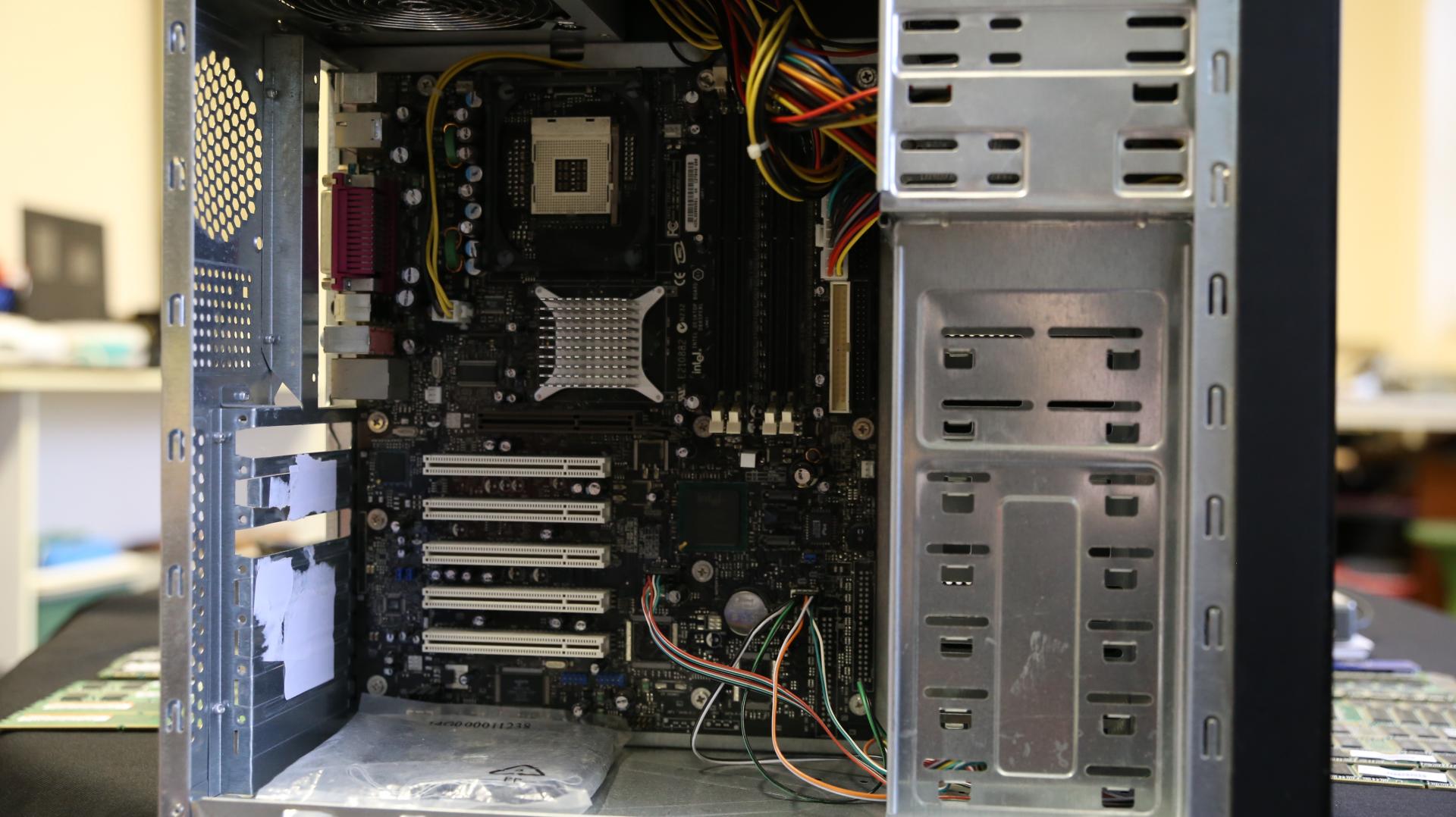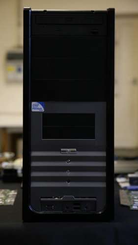 1db Fekete PC ház, működő Intel D865 PERL alaplap 2SATA, 400W 12cm tápegység, fekete DVD-RW 4k3db hangkártya és 3db hálókártya (Összesen: 1k)
