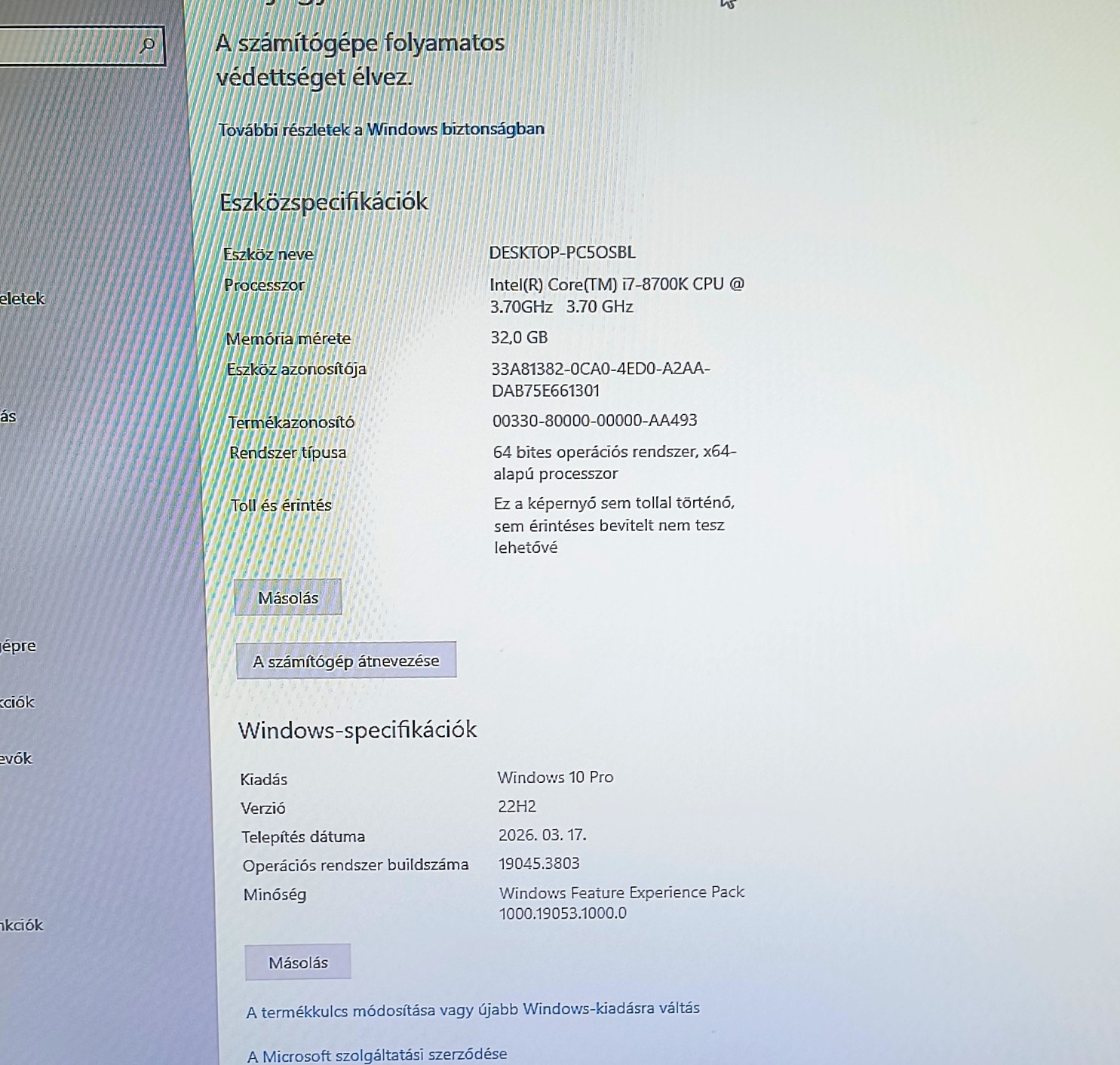 Processzor: Intel core i7-8700k