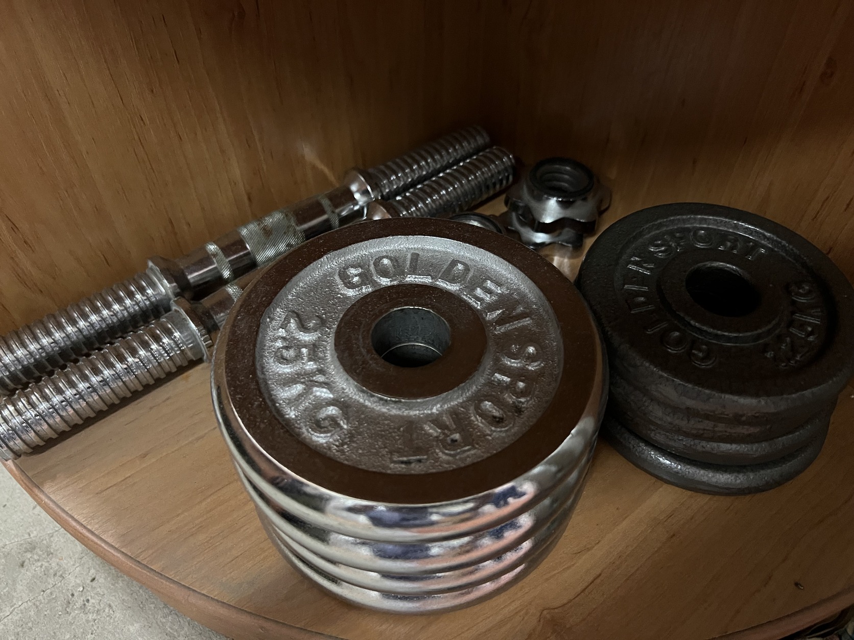 Eladó kézi súlyzó pár. kézi rúd és 4-4 tárcsa.