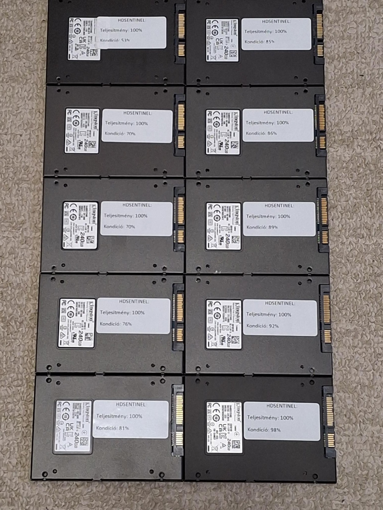 Eladó lett 10db Kingston 240GB SSD, 98%-os kondíciótól egészen 53%-os-ig.