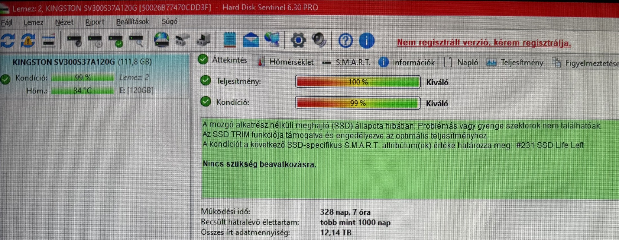 ELADÓ - Kingston SV300 120GB SSD 100/99%