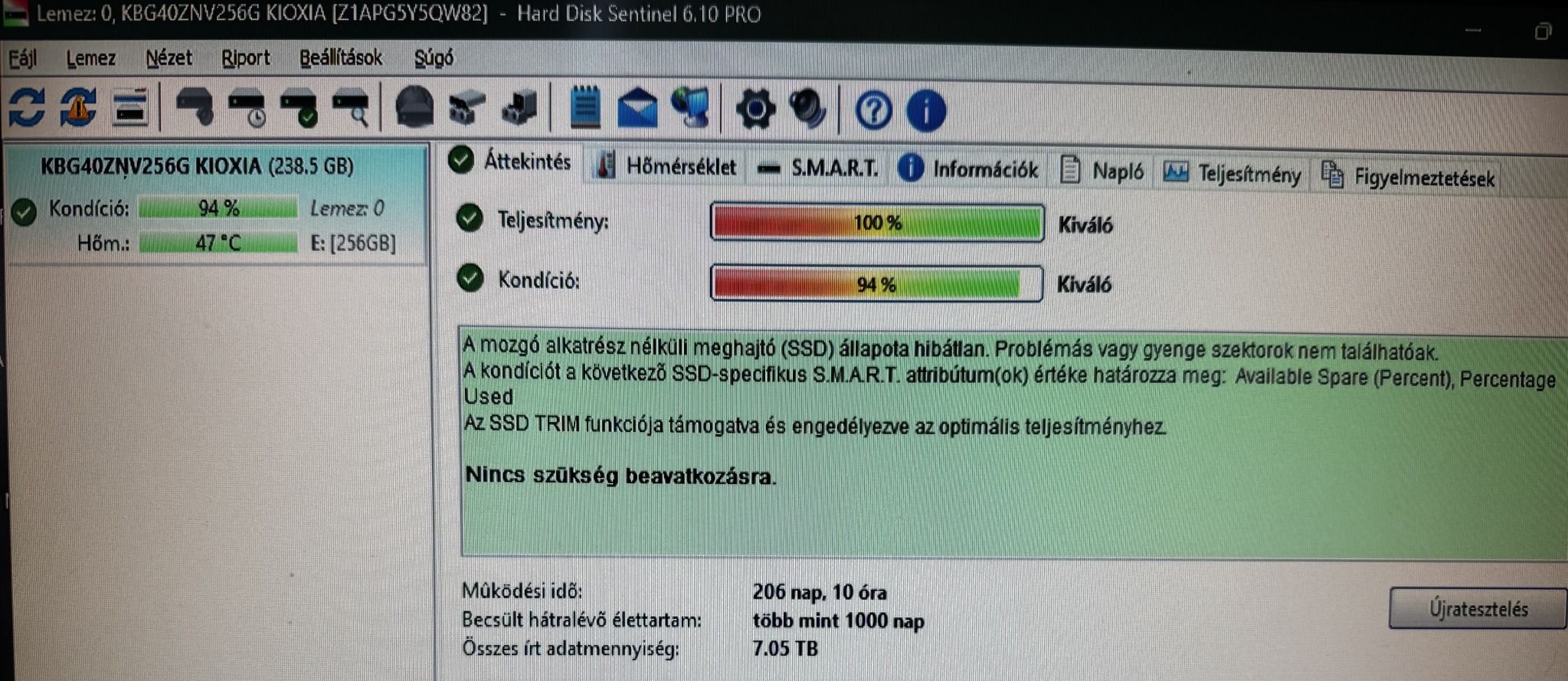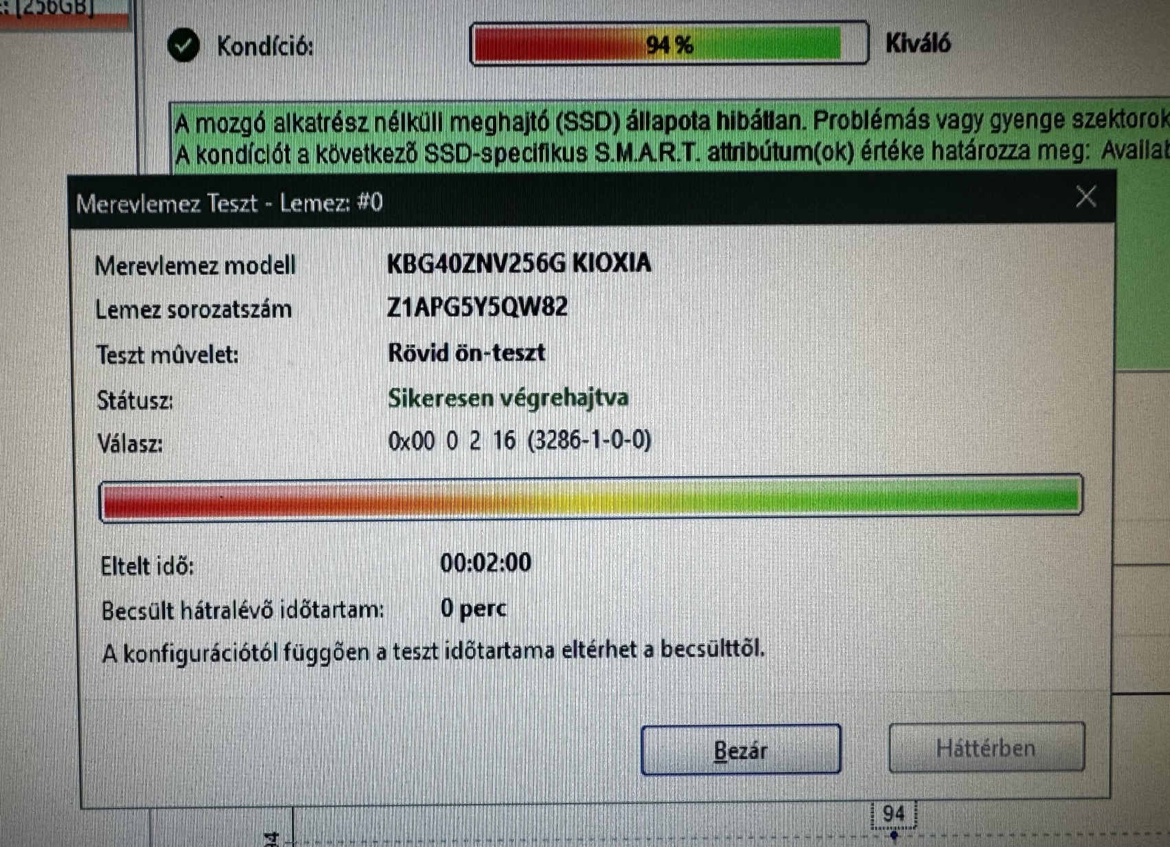 ELADÓ - KIOXIA 256GB NVMe SSD (100/96%)
