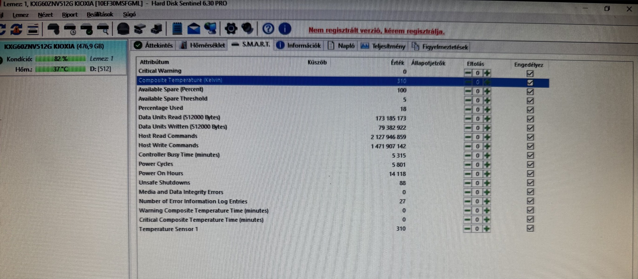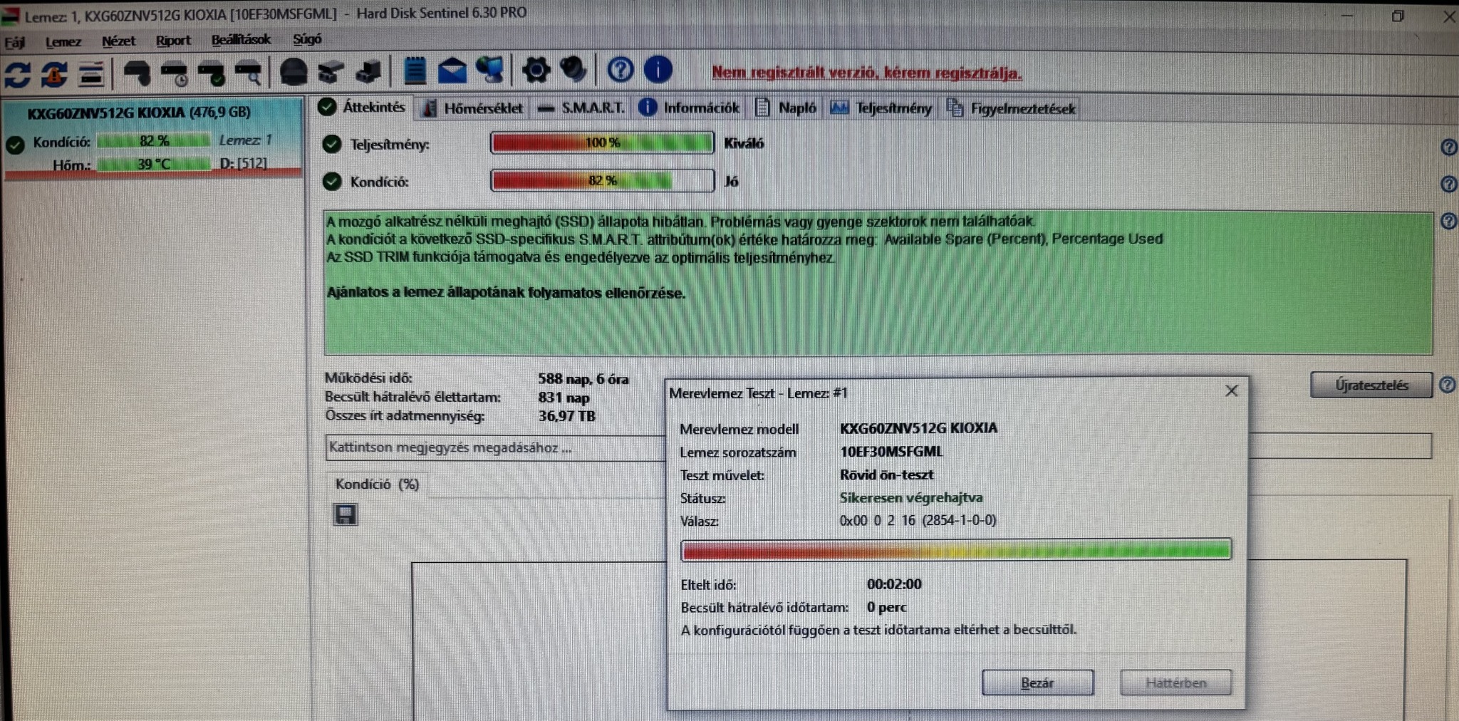 ELADÓ - KIOXIA 512 NVMe SSD (100/82%)