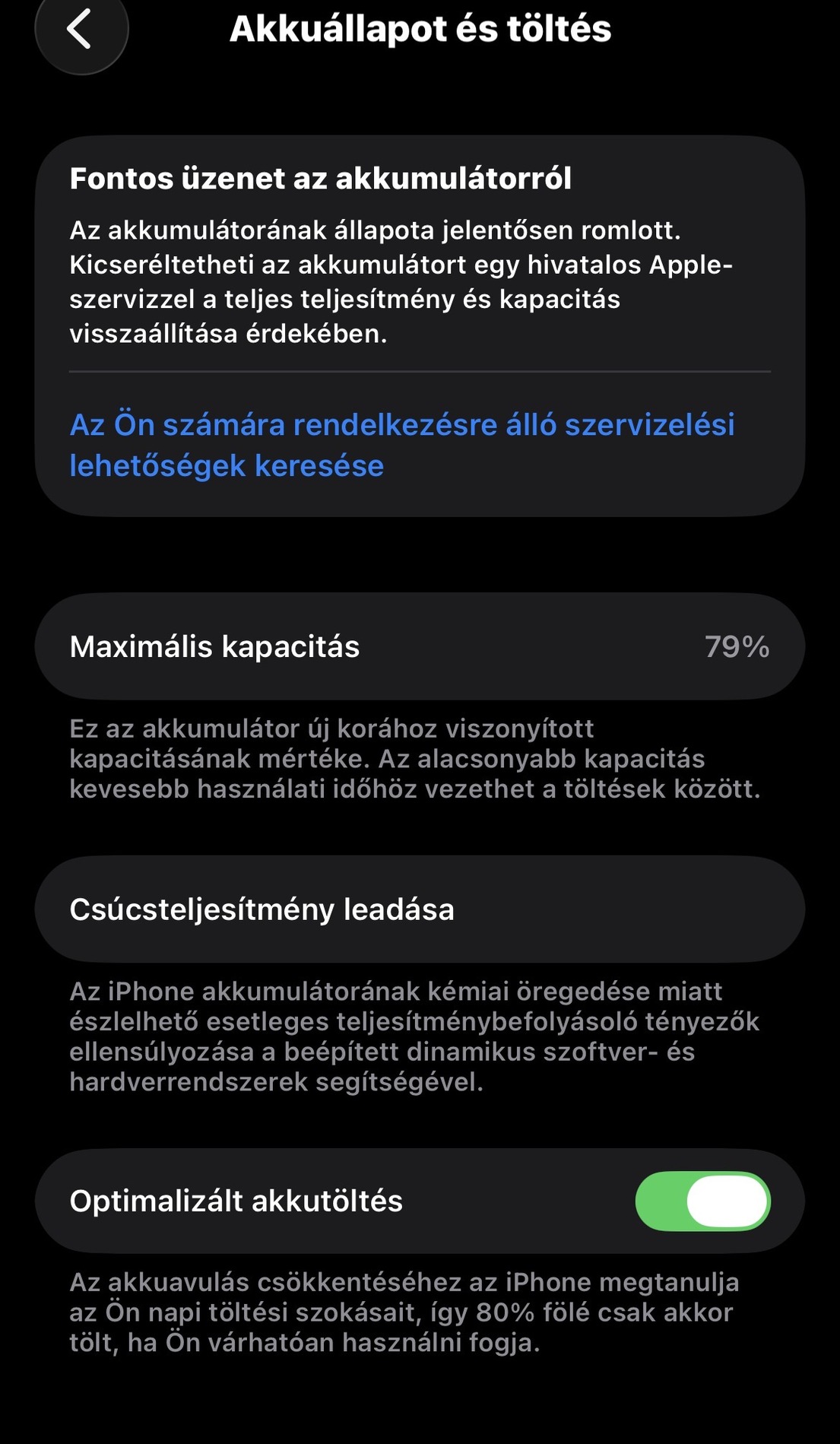 Az akkumulátor 79%-os, gyári.