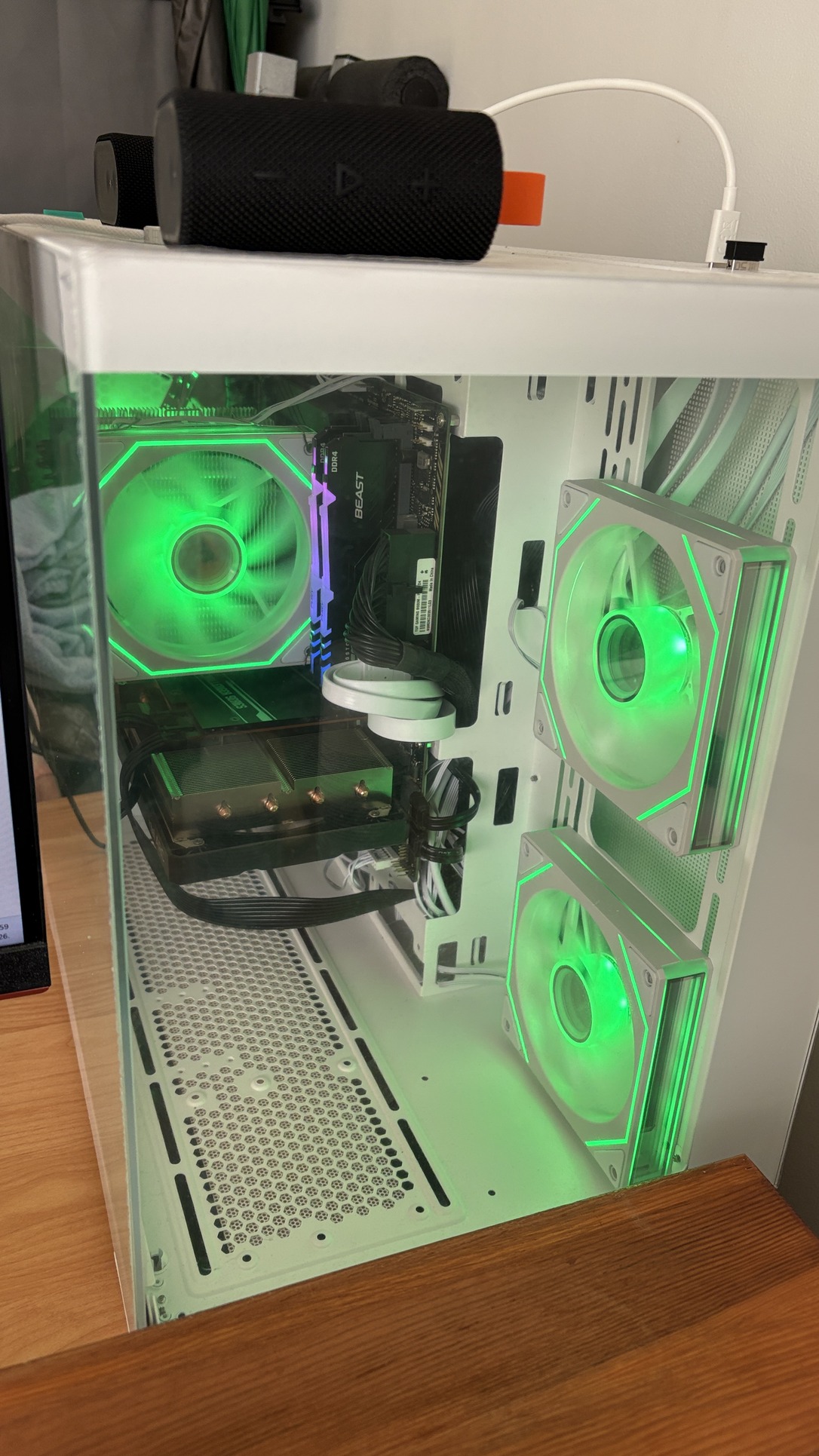Gépház: DeepCool CG 530 4F WH ( Lehet változtatni a ventik RGB világítását, ha a zöld nem tetszene. )