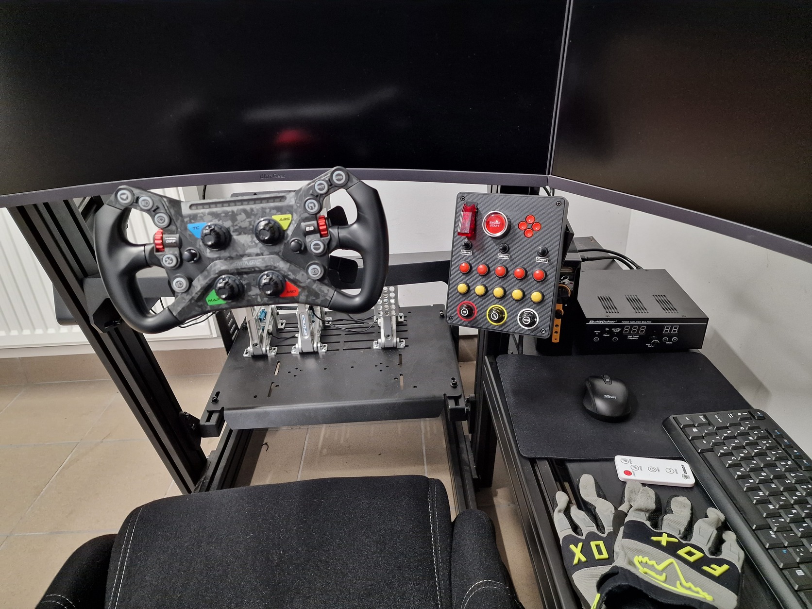A komplett szett bőven 2 millió felett van. A pedál kivételével minden garanciás. A monitorok Euronics, a többi Simhome. Minden alkatrészhez megvan a gyári doboza és papírjai.