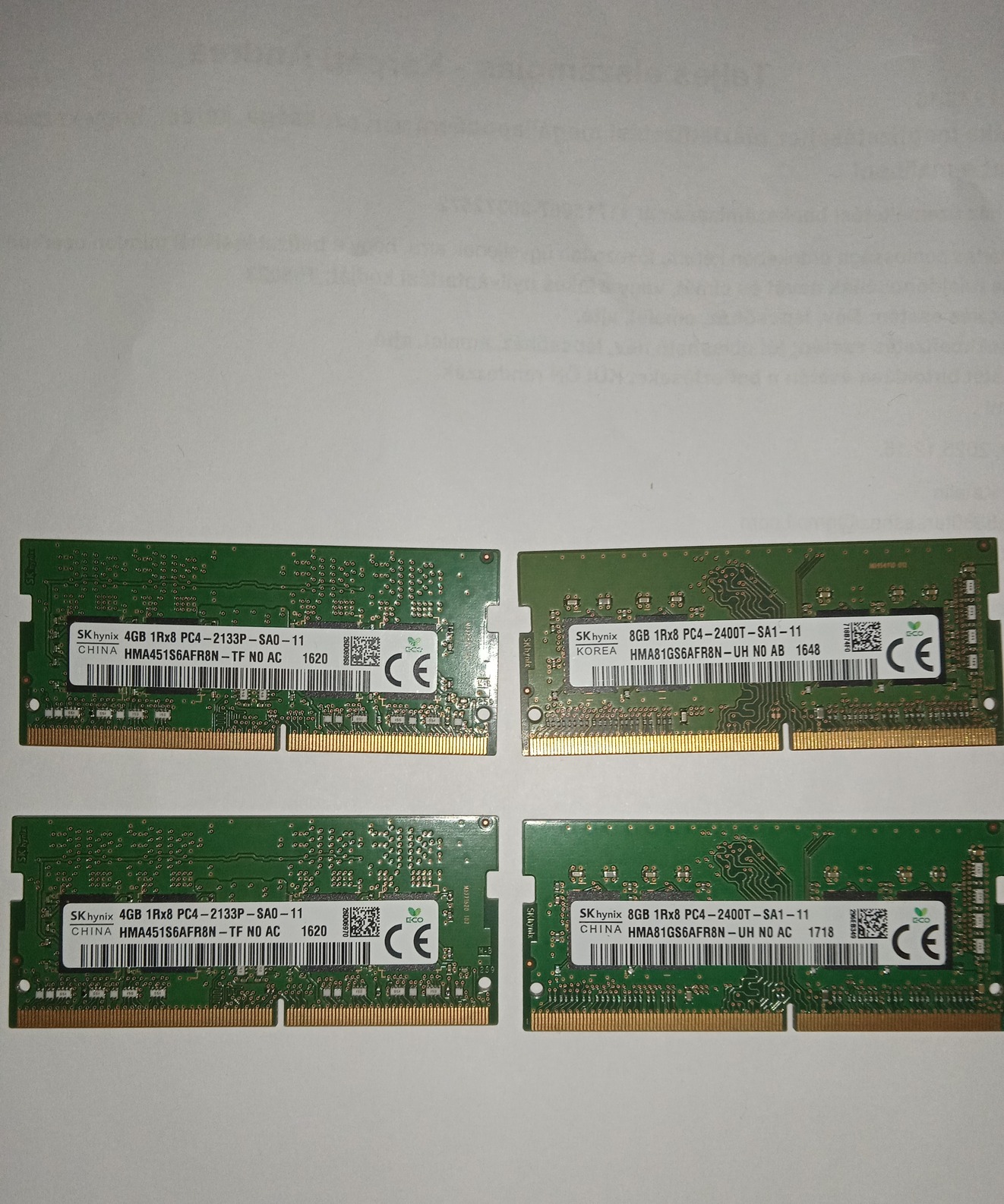 2 darab: SK Hynix 8 GB DDR4 1Rx8 PC4-2400T-SA1-11 Korea HMA81GS6AFR8N-UH NO AB 1648 CE