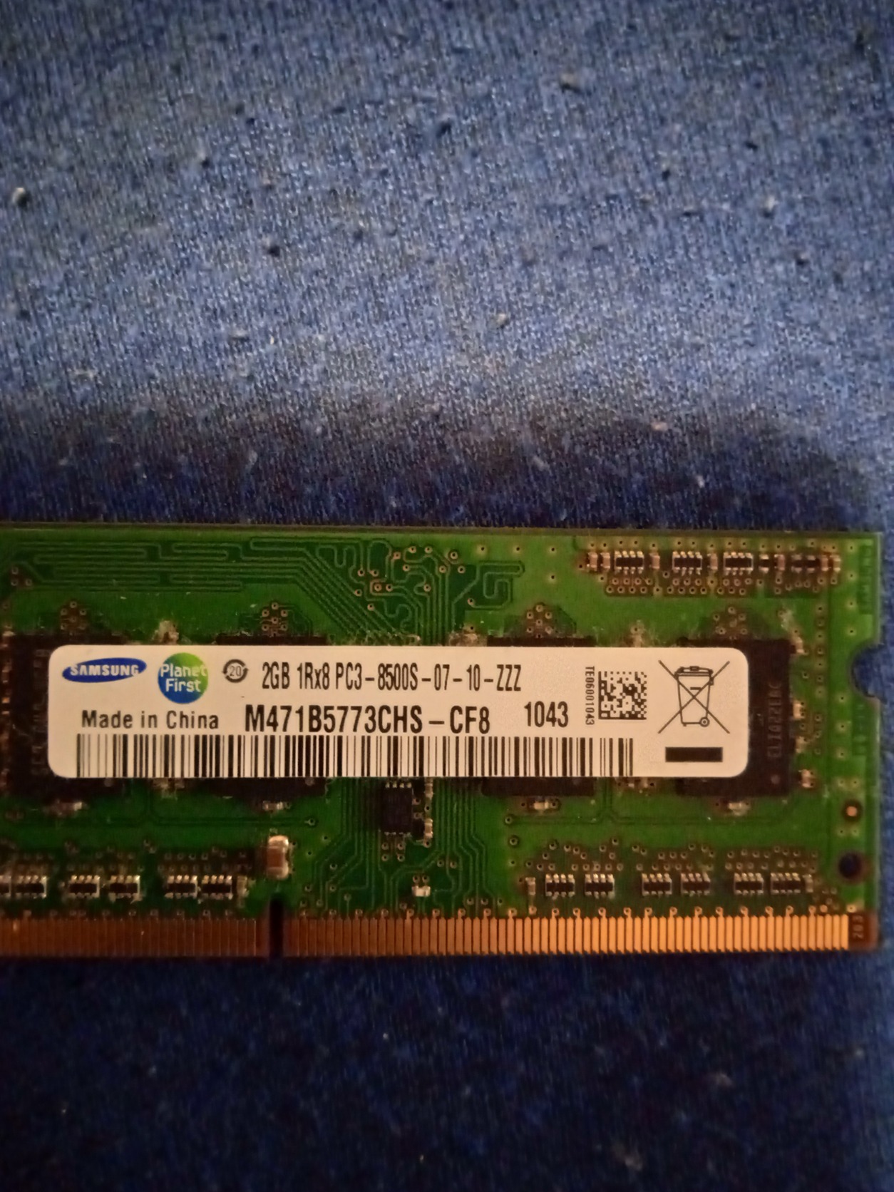 1 darab: Samsung 2 GB DDR3 SO-DIMM PC3-8500S (1066 MHz / 1067 MHz)