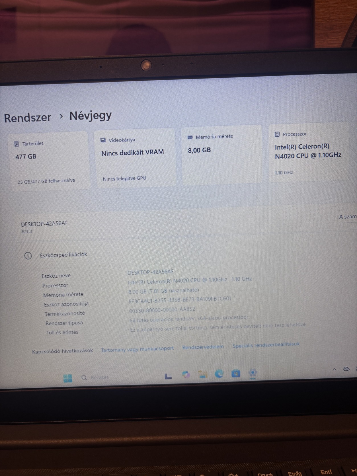 -Processzor: Intel Celeron N4020 1,1GHz