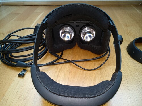 Eladó dobozában, minden tartozékával ez a kiváló műszaki állapotú Lenovo Explorer VR szett. Már én is használtan vettem az ebay-ről nem egész egy éve, ezért garancia már nincs rá. Tökéletesen működik, de van néhány esztétikai hibája, ezeket bekarikáztam a képeken (az egyik kontroller valszeg meg lett húzva valamin, illetve a HMD-n van egy karc). A szivacs néhány helyen elengedett, de működés közben nem zavaró. A két lehúzható szivacspárnát megcseréltem benne, ahogy azt a neten ajánlják ennél a típusnál.