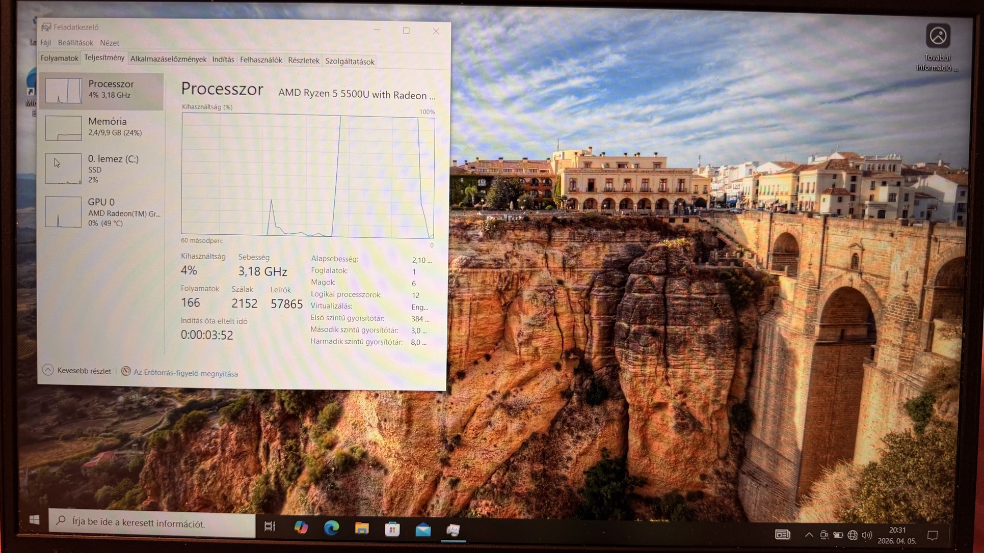 12giga ram, 256gb ssd, Amd Ryzen 5500u processzor.