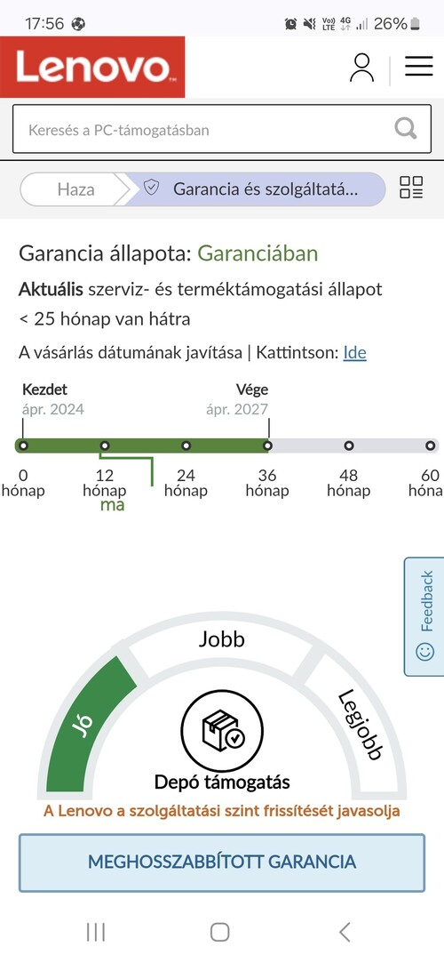 Még 25hónap garancia van a Lenovon.