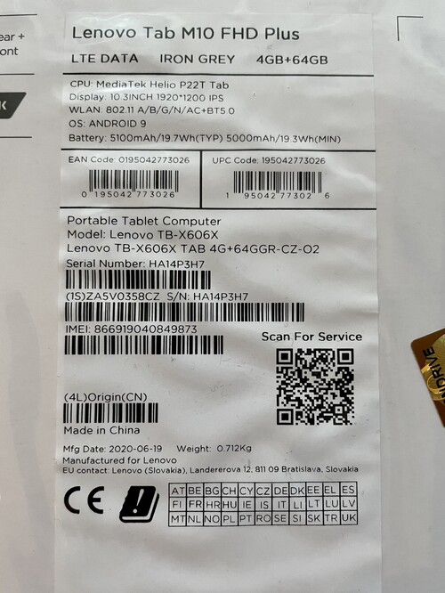 Eladó egy kifogástalan állapotú Lenovo Tab M10 FHD Plus LTE Iron Gray (TB-X606X 4GB + 64GB) tablet. Másfél éve az Alza-ban vásárolt, eredeti doboza és töltője megvan. Megtekinteni Vecsésen vagy hétköznapokon napközben Budapest belvárosában lehet.